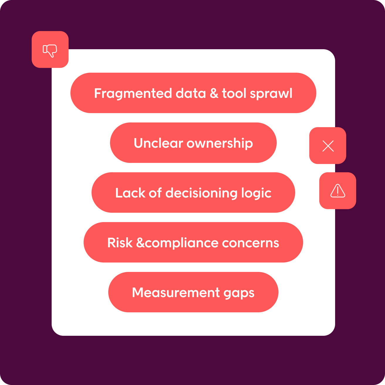 - Lack of decisioning logic – Teams have insight, but no shared answer to “what should happen next?”
