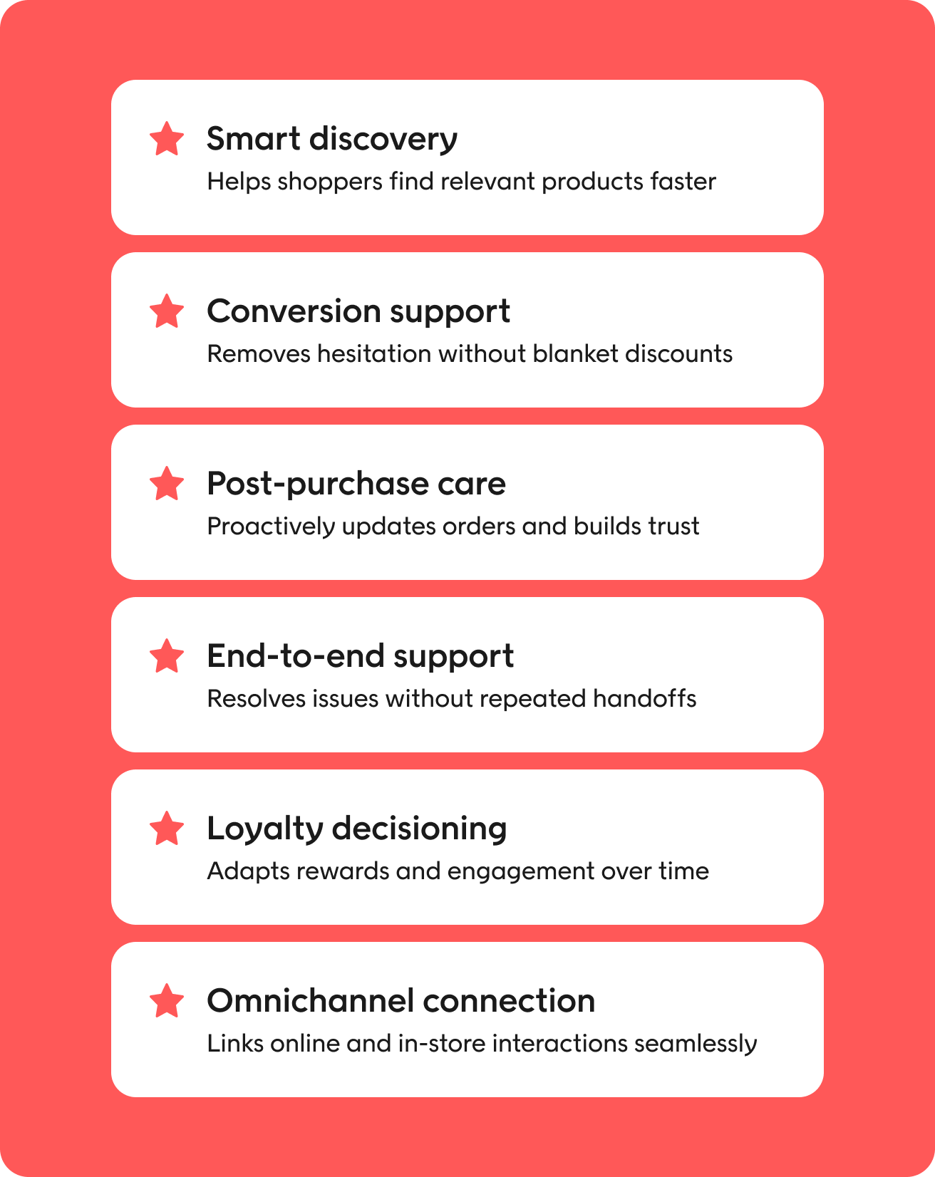 - The value shows up first in CX, from discovery and conversion to post-purchase, support, and loyalty.