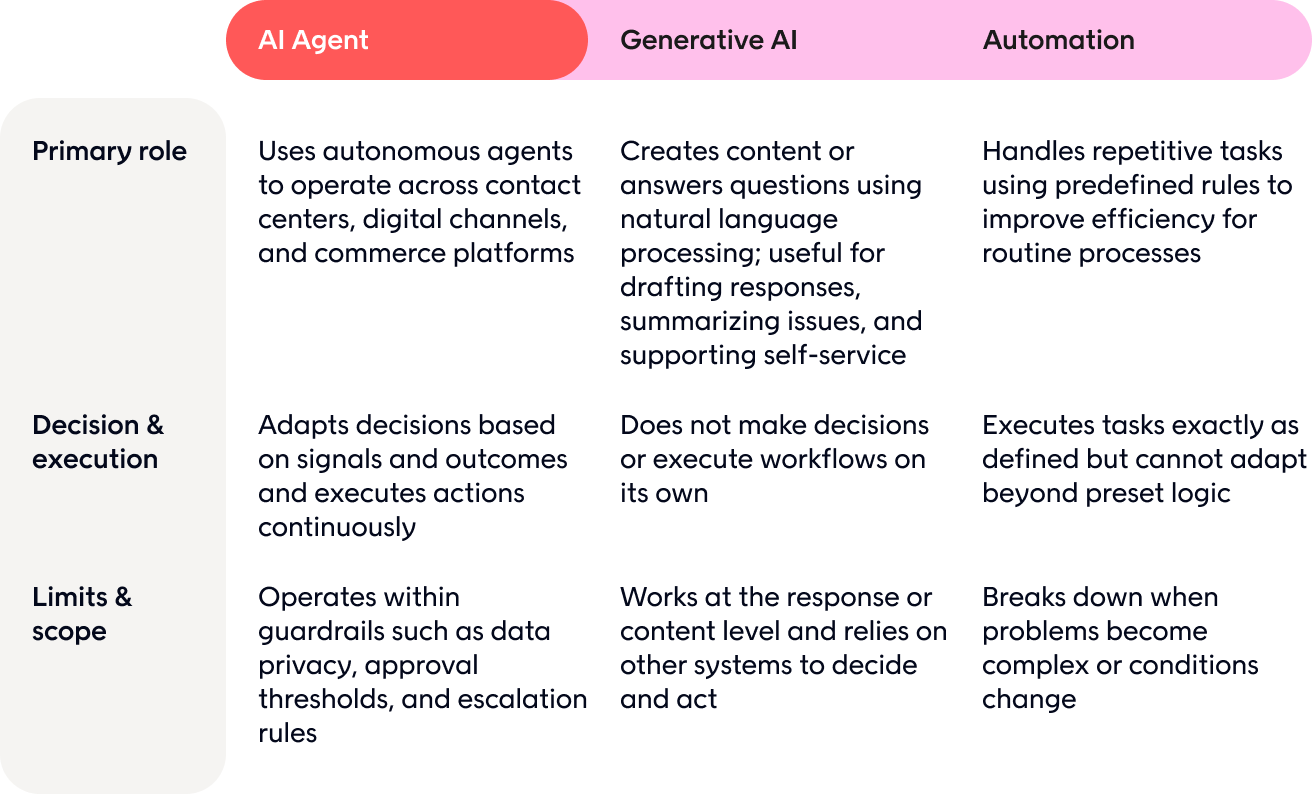 This learning loop is what allows agentic AI in CX to scale. The system improves through use, rather than relying on constant manual tuning by data scientists or CX teams.