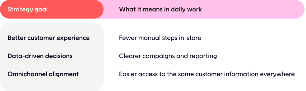 You move from discount-led programs to engagement-driven strategies focused on customer experience and growth. That requires cultural shifts and stakeholder engagement across marketing and store teams.